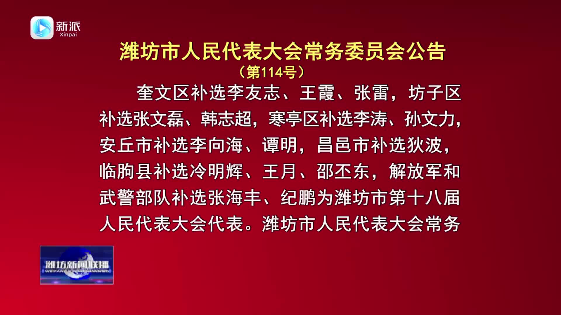 【濰坊新聞聯(lián)播】濰坊市人民代表大會常務委員會公告(第114號)