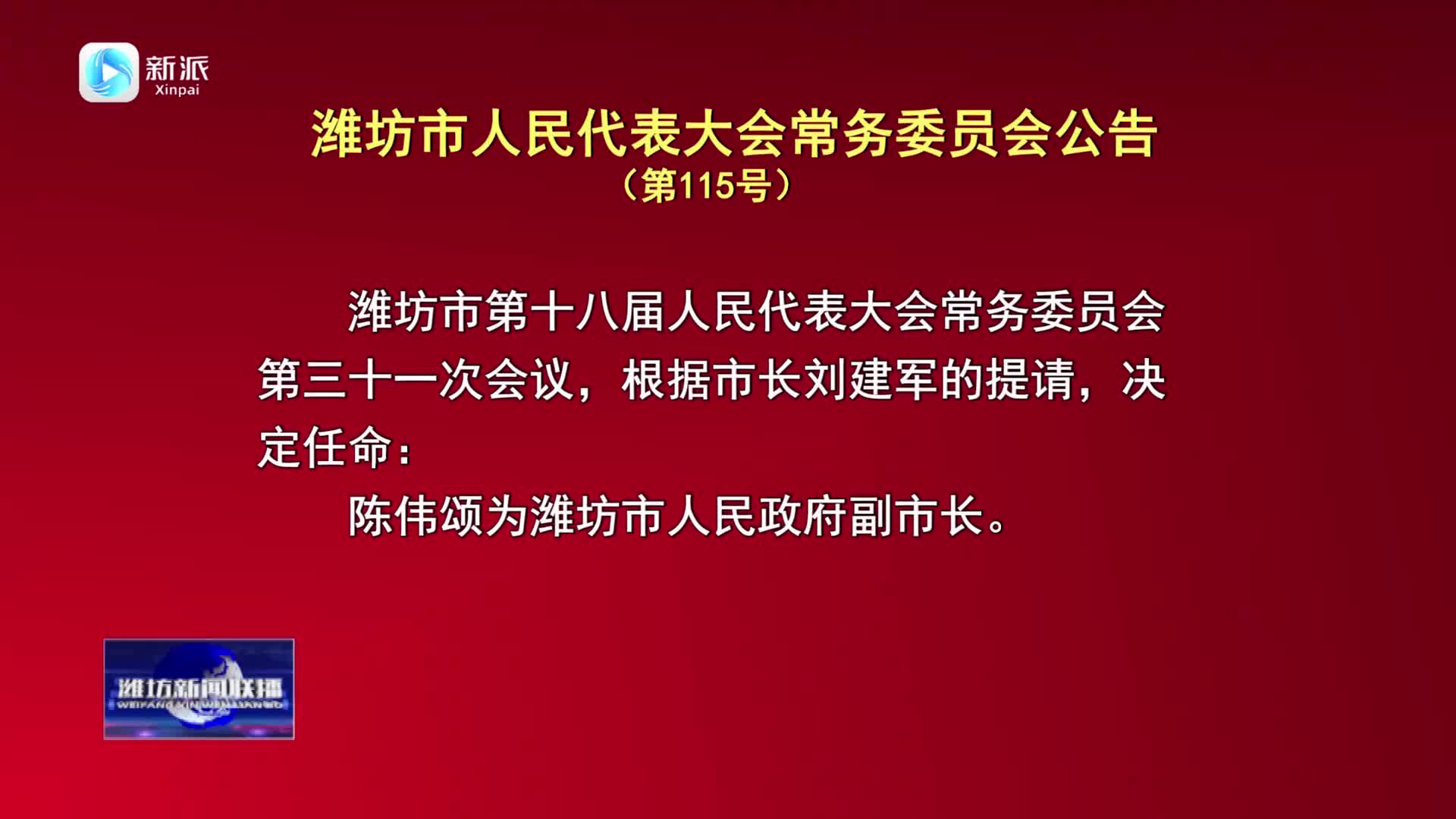 【濰坊新聞聯(lián)播】濰坊市人民代表大會常務委員會公告(第115號)