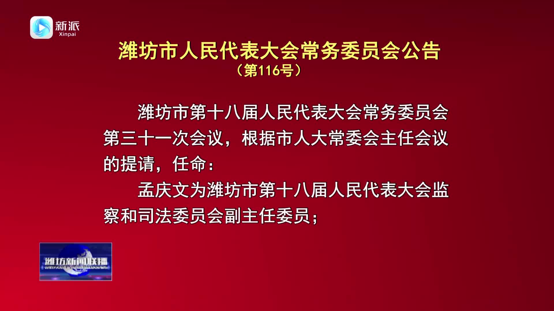 【濰坊新聞聯(lián)播】濰坊市人民代表大會常務委員會公告(第116號)
