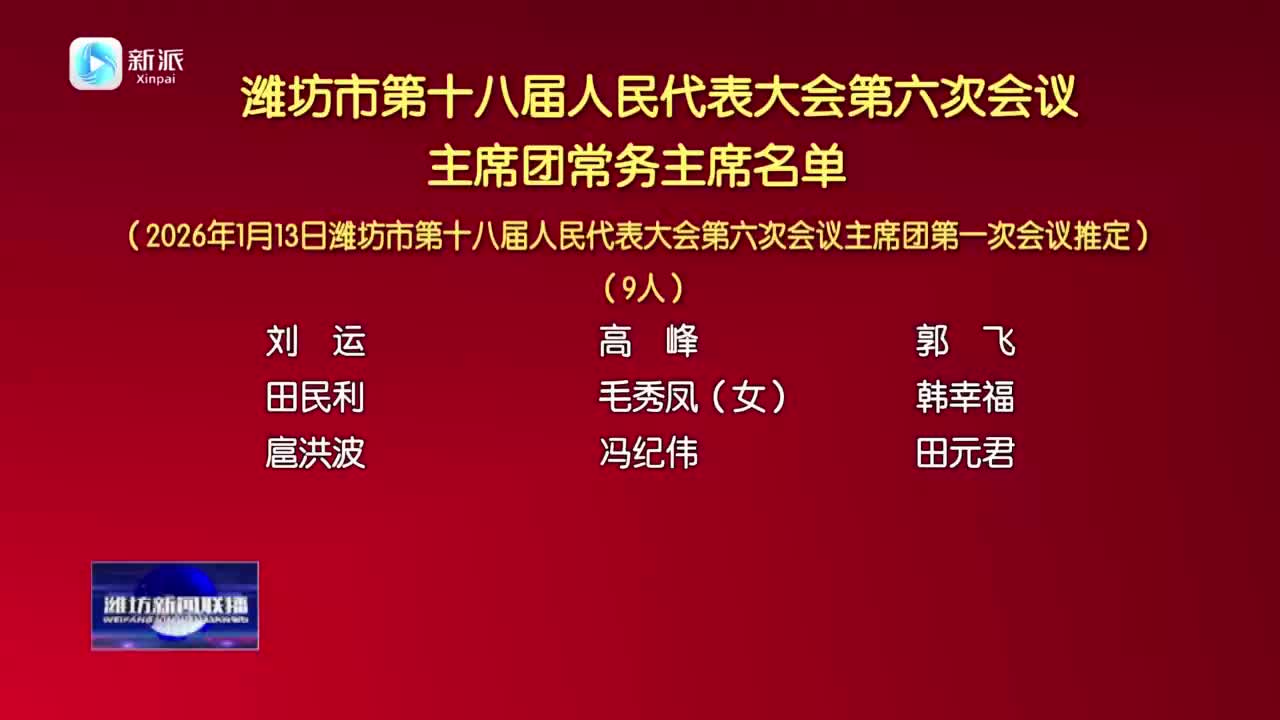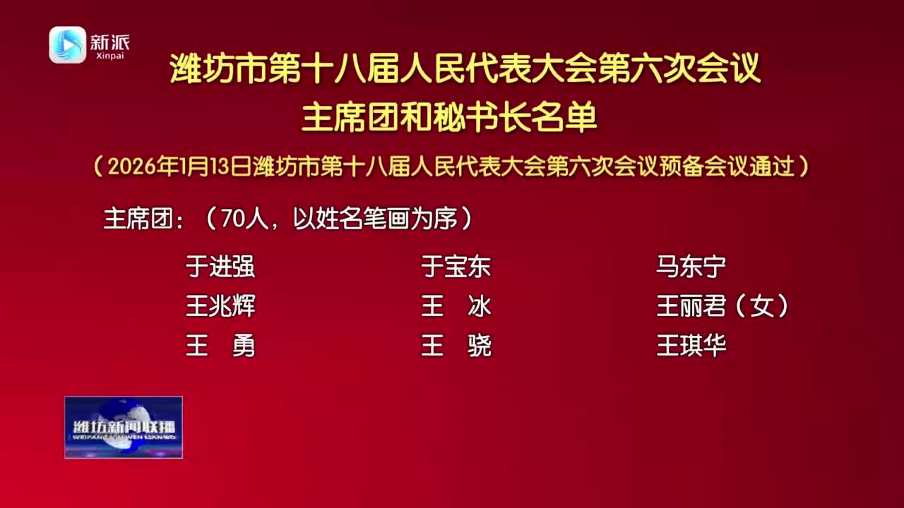 【濰坊新聞聯(lián)播】濰坊市第十八屆人民代表大會第六次會議主席團常務主席名單