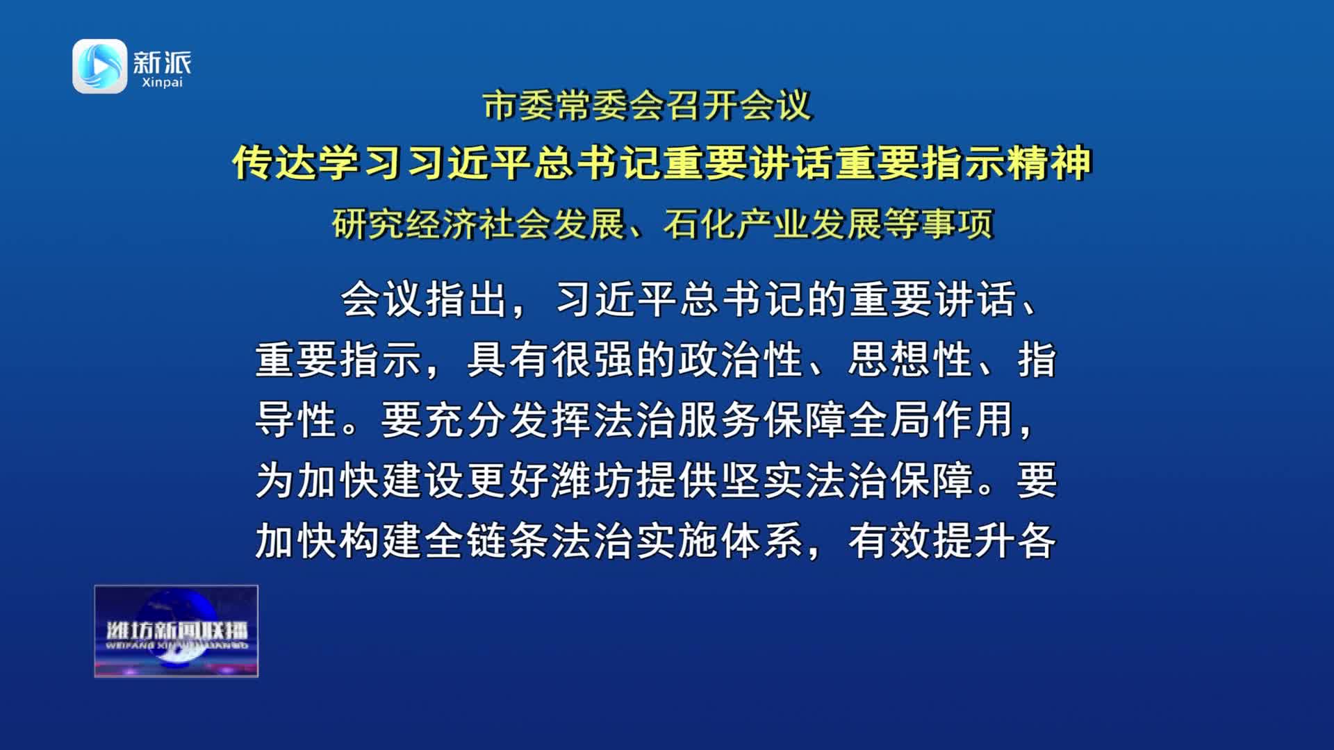 【濰坊新聞聯(lián)播】市委常委會召開會議 傳達學習習近平總書記重要講話重要指示精神 研究經(jīng)濟社會發(fā)展、石化產(chǎn)業(yè)發(fā)展等事項
