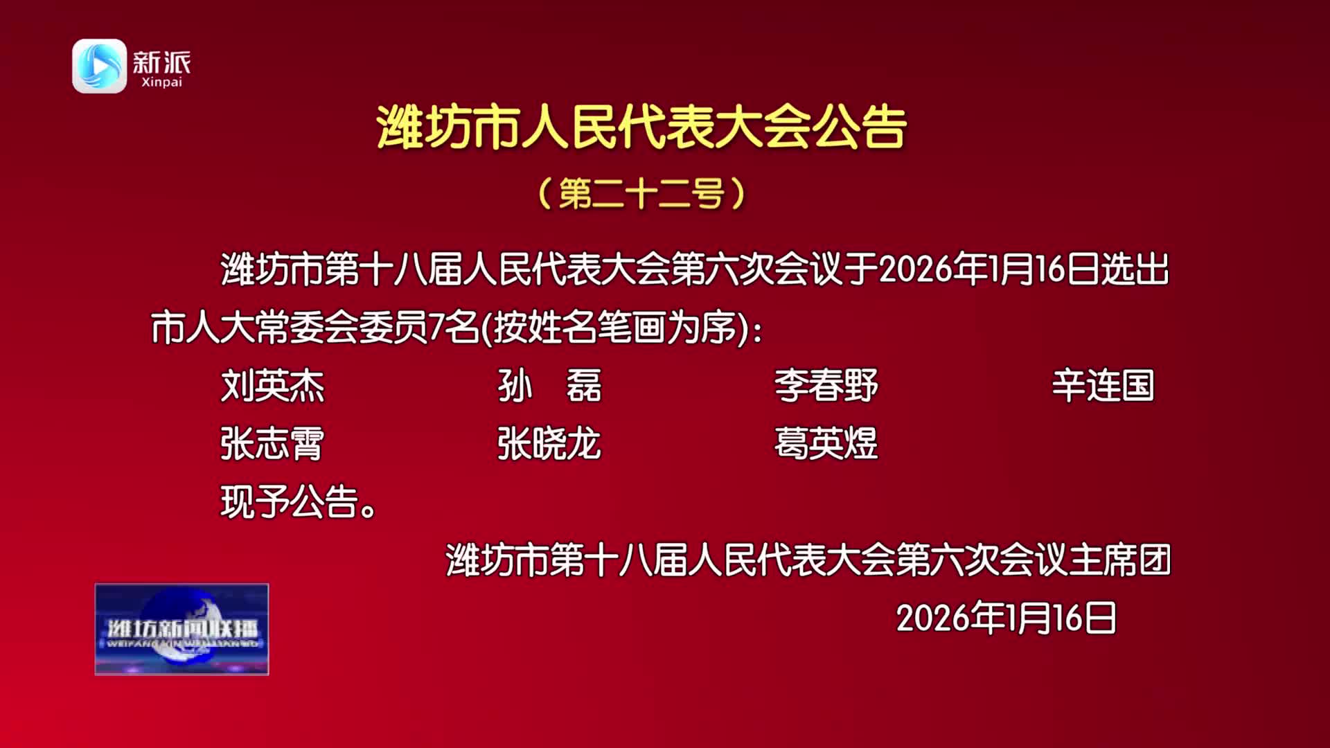 【濰坊新聞聯(lián)播】濰坊市人民代表大會(huì)公告(第二十二號(hào))