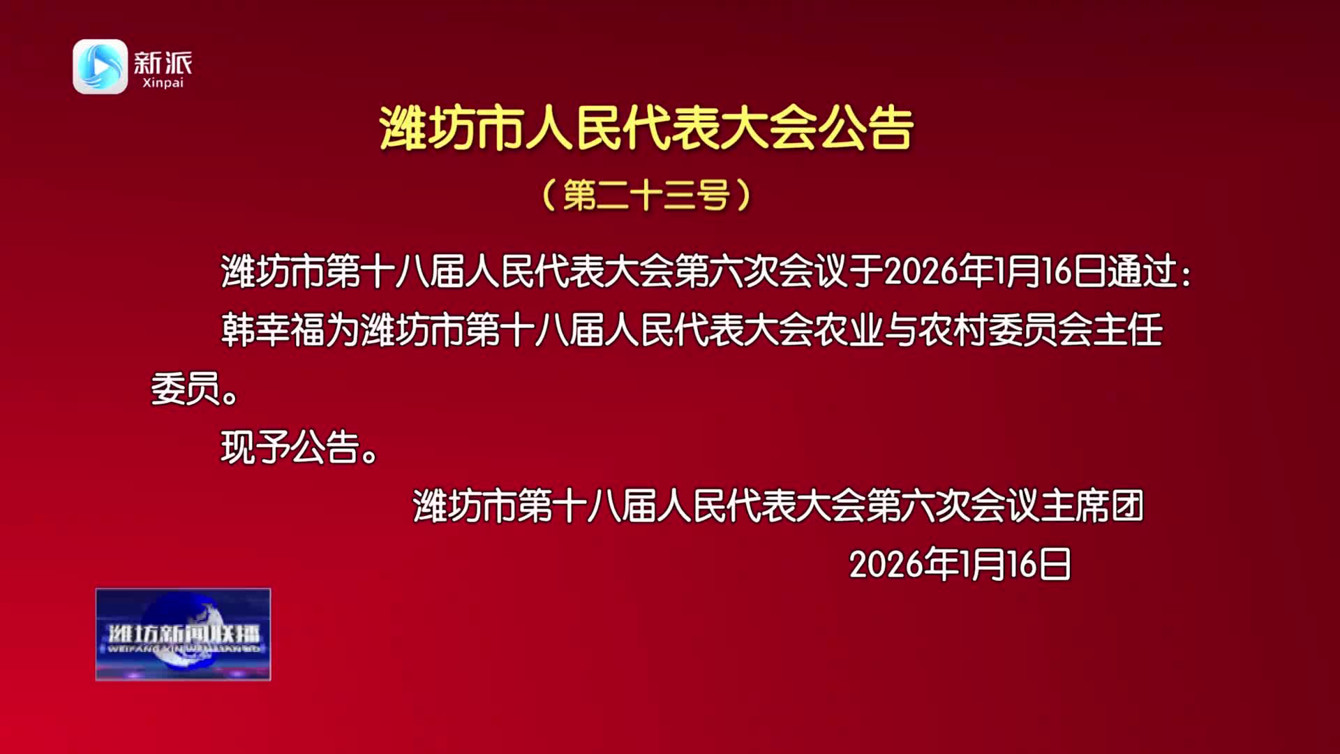 【濰坊新聞聯(lián)播】濰坊市人民代表大會(huì)公告(第二十三號(hào))