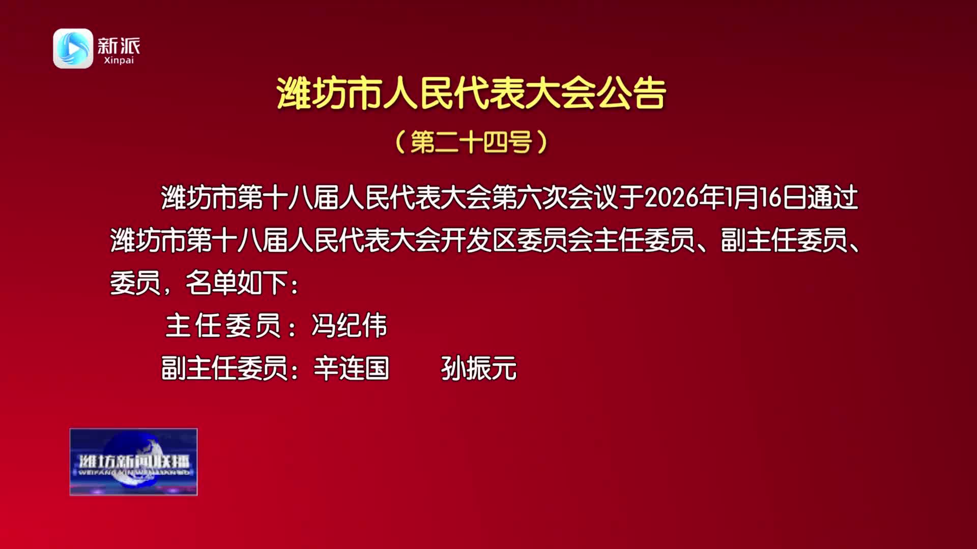 【濰坊新聞聯(lián)播】濰坊市人民代表大會(huì)公告(第二十四號(hào))