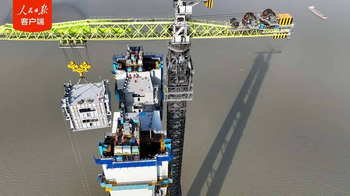 “從設(shè)計(jì)圖紙到高塔矗立江心,從主塔首節(jié)段吊裝到上橫梁合龍,歷時630多天,每一次吊裝的精心組織、每一個節(jié)段的精準(zhǔn)對接,均成為中國橋梁技術(shù)向世界頂尖水平邁進(jìn)的有力見證?!敝薪欢骄謴埦父揲L江大橋項(xiàng)目技術(shù)負(fù)責(zé)人黃修平表示。