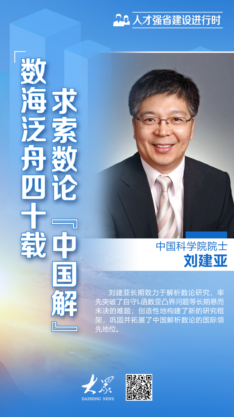 劉建亞長期致力于解析數(shù)論研究,率先突破了自守L函數(shù)亞凸界問題等長期懸而未決的難題;創(chuàng)造性地構(gòu)建了新的研究框架,鞏固并拓展了中國解析數(shù)論的國際領(lǐng)先地位。先后獲得國家自然科學(xué)二等獎、何梁何利基金科學(xué)與技術(shù)進步獎、全國創(chuàng)新爭先獎、山東省科學(xué)技術(shù)最高獎等榮譽。